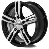 Fälg från GMP på 18" med modellnamnet DEA Shiny Black. Bultcirkeln är 5/120, bredden 9" och ET-måttet är 44 mm.